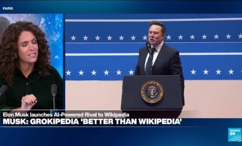 شركة (إلون موسك) لـ (إكس آي) أطلقت موقعاً على شبكة الإنترنت يُدعى (غروكيبيديا) للتنافس مع الموسوعة الإلكترونية (ويكيبيديا) والتي اتهمها هو والآخرون في الجناح الأيمن الأمريكي بالتحيز الإيديولوجي لكن هل يمكن الوثوق بمعلومات (غروك)؟ 24′ كيتيفان) يلقي نظرة).