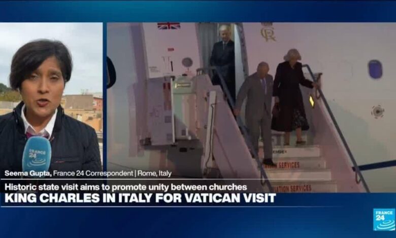 ووصل الملك تشارلز والملكة كاميلا إلى روما يوم الأربعاء لزيارة تاريخية للدولة إلى الفاتيكان، حيث سيقابلان البابا ليو في لفتة من الوحدة بين كنيسة إنكلترا والكنيسة الكاثوليكية. ووصف بيان أدلى به المتحدث باسم الملك وجود روابط أوثق بين الدينين بأنه ” شعلة حيوية ضد الصراع والانقسام والطغيان “. (تشارلز) سيكون أول ملك بريطاني منذ إصلاح القرن السادس عشر للصلاة مع البابا غير أن هذه الزيارة تحجبها الفضيحة المستمرة التي تشمل الأمير أندرو. 24 تقارير سيما غوبتا من روما، إيطاليا.