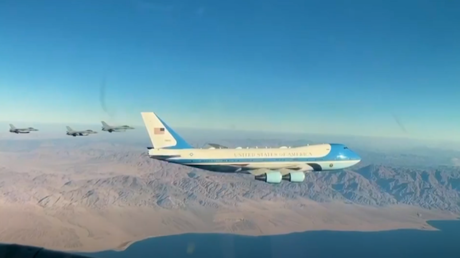 وفي الفيديو يظهر صوت قائد السرب مقاتلات -16 المصرية التي استقبلت طائرة الرئيس الأمريكي وهو يرحب بهم داخل المجال الجوي المصري وينقل لهم رسالة من الرئيس المصري عبد الفتاح السيسي.