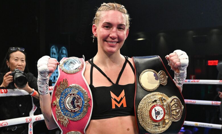 المايير الهيمنة (ماري سبنسر) لتوحيد أحزمة الوزن الخارقة مع انتصار القرار الإجماعي في مونتريال (ماري سبنسر) لتصبح بطلاً موحداً للوزن فوق المستنقعات وتطالب بعناوين و و؛ (ماير) عاطل (سبنسر) أكثر من 10 طلقات والآن عيناه غير متنازعتين عند 154 رطلاً أو العودة إلى 147 للتحدي (لورين برايس)