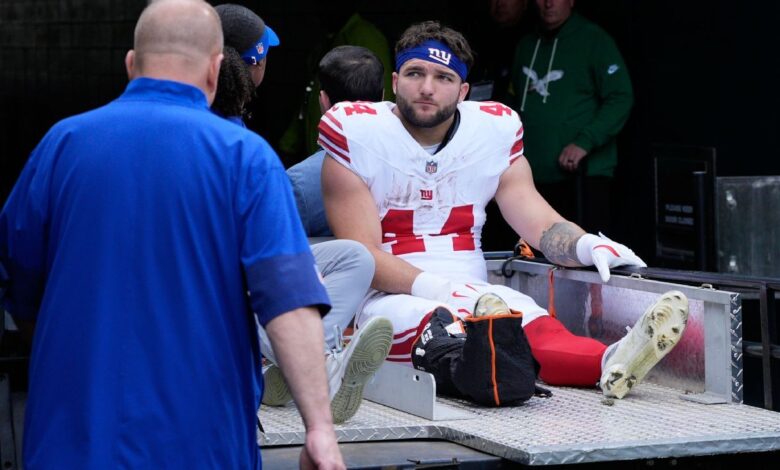 , – , 101410. كان لديه أيضاً زوج من النتائج (2-6). (نابر) خضعت لعملية جراحية على الـ (إي سي إل) الممزقة في ركبته اليمنى يوم الثلاثاء في منطقة (دالاس) ومن المتوقع أن يعود إلى العمالقة لإعادة تأهيلهم في وقت لاحق من الأسبوع، وفقاً لدبول.