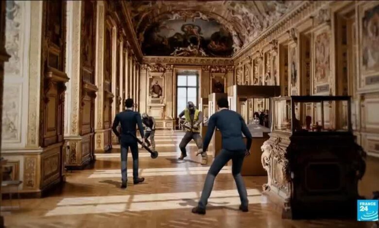 ظهرت فيديو لإظهار اللصوص المزعومين وراء سرقة اللوفر يجعلهم يهربون على سلم ميكانيكي في وضح النهار شخصان يمكن رؤيتهما ينظران بغرابة بينما ينحدران ببطئ بعد دقائق من اختراق متحف باريس المزيفة عصابة أربعة لصوص لم يتم القبض عليهم و يوم الأربعاء، إعترف رئيس (لوفير) أن الموظفين لم يكتشفواهم مبكراً بما فيه الكفاية ليزا كامينوف وزملائنا من فرنسا2 ن. بيريز و إي. فينوتو لديهم المزيد من التفاصيل.