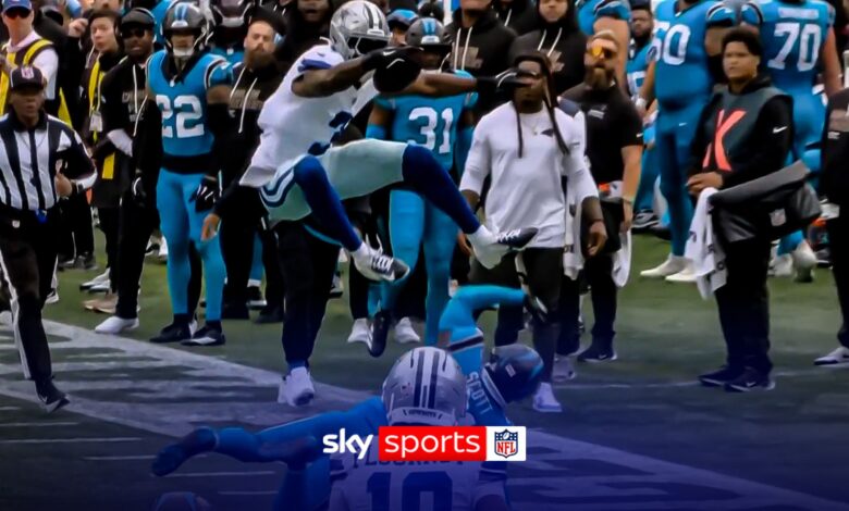 (جورج بيكينز) لديه عقبة كبيرة لـ (دالاس راعي البقر) مما أدى إلى هدف ميداني ضد (كارولينا بانثرز).