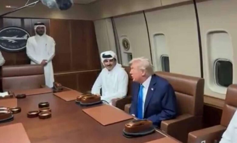 ترامب يلتقي أمير قطر على متن الطائرة الرئاسية … فيديو