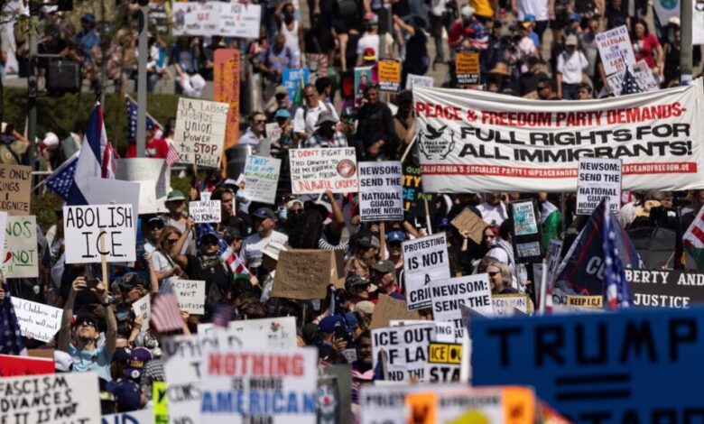 أكثر من 7002 إحتجاجات “لا ملوك” ضد سياسات الرئيس (دونالد ترامب) مخططة في عدة مدن أمريكية يوم السبت في أكبر يوم من المظاهرات الجمهوريين الأوائل أطاحوا بالاحتجاجات على أنها تجمعات أمريكية.