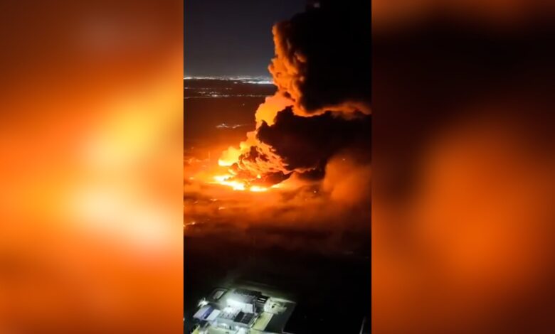 وقال مسؤولون إن السلطات المحلية استجابت للحادث، وأظهرت المشاهد تصاعد ألسنة لهب هائلة.
