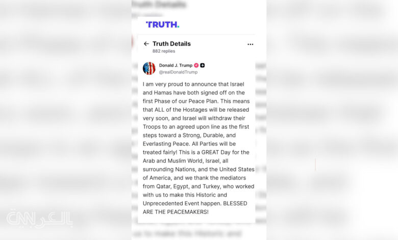 شاهد.. ترامب يعلن المرحلة الأولى من خطة السلام في غزة