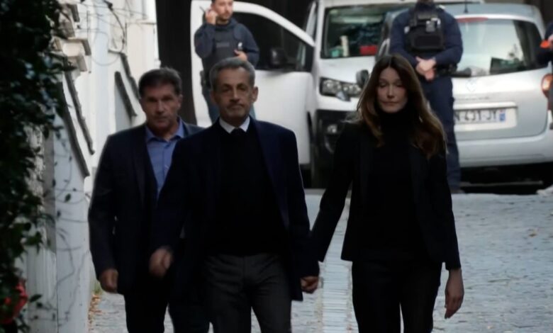 شاهد.. لحظة مغادرة الرئيس الفرنسي الأسبق نيكولا ساركوزي منزله إلى السجن