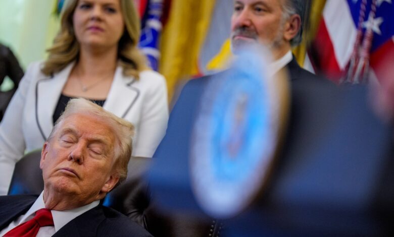صور ترامب وهو يغلق عينيه خلال حدث بالبيت الأبيض تجتاح وسائل التواصل