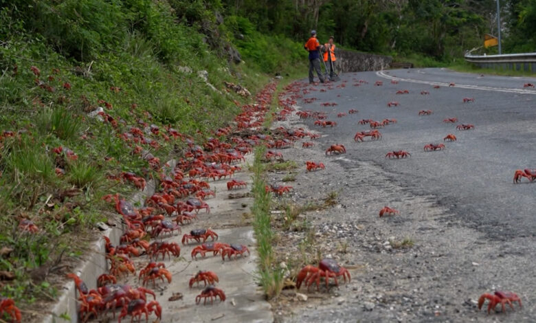 فيديو مذهل لملايين سرطانات البحر الحمراء تغزو جزيرة أسترالية