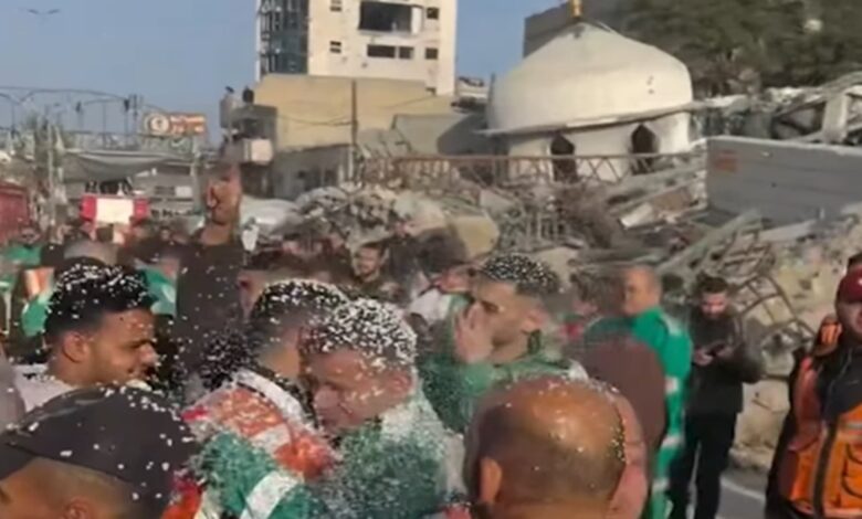 فيديو منسوب إلى “رد فعل طواقم الإسعاف والدفاع المدني بعد اتفاق غزة”