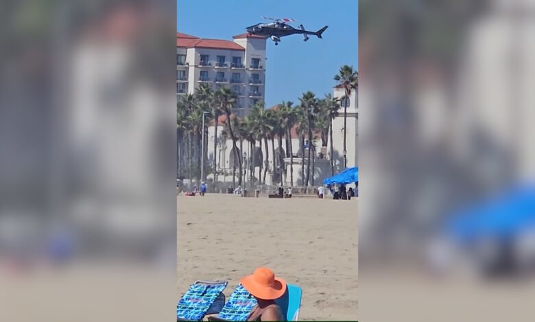 أظهر فيديو تم توثيقه من أشخاص متواجدين على شاطئ لحظة تحطم مروحية كانت تستعد للهبوط في موقف سيارات على شاطئ مدينة هنتنغتون بيتش، بولاية كاليفورنيا الأمريكية.
