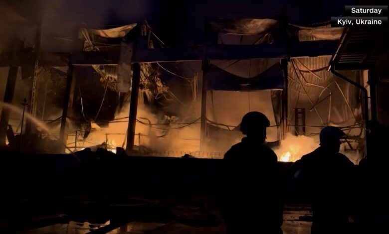 ضربت طائرات مُسيّرة عدة أبراج شاهقة في العاصمة الأوكرانية، كييف. وأدى هجومٌ إلى اندلاع حريق في مبنى سكني مكون من 9 طوابق، حيث تم إنقاذ 13 شخصًا من الطوابق العليا. وقالت أوكرانيا إن هجمات روسية شُنت ليلاً على كييف أسفرت عن مقتل 3 أشخاص على الأقل وإصابة العشرات، بينهم 6 أطفال.