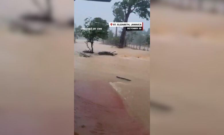 تُظهر مقاطع فيديو أمطارًا غزيرة ورياحًا عاتية وفيضانات مع اجتياح إعصار “ميليسا” جامايكا.