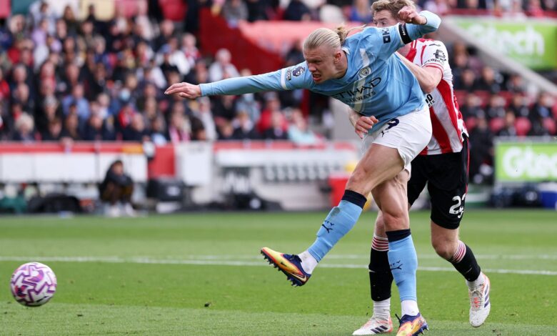 (إرلينغ هالاند) حقق المباراة التاسعة على التوالي لطرد (مان سيتي) إلى ربح واحد في (برينتفورد) يوم الأحد