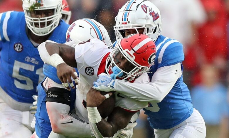 ياردات لكل حمل: دفاع (جورجيا) السادس، (أولي ميس): , 64