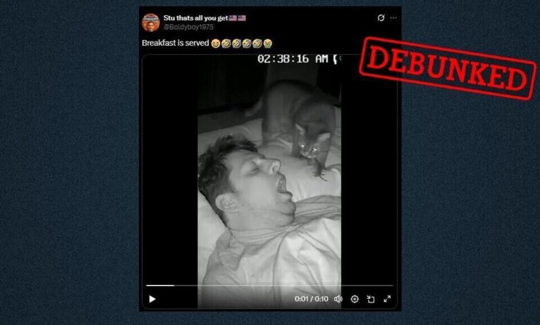 فيديو فيروسي على (تيك توك) يُزعم أنّ لقطات مراقبة لقطّة تسقط فأراً في فم مالكها النائم، مزيف في الواقع. المقطع تم توليده باستخدام الجيل القادم من الذكاء الاصطناعي ربما (سورا 2).