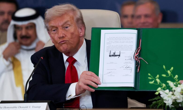 وسط تصفيق قادة عرب وغربيين.. لحظة توقيع اتفاق غزة في قمة شرم