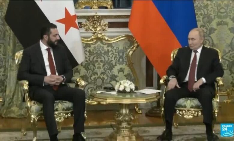 وقال الرئيس السوري أحمد الشارة يوم الأربعاء إنه يريد إعادة تعريف العلاقات مع موسكو حيث قام الرئيس الروسي فلاديمير بوتين باستضافته في اجتماعهم الأول لأن حليف كرملين بشار الأسد قد أُغلق في العام الماضي. , , ,.