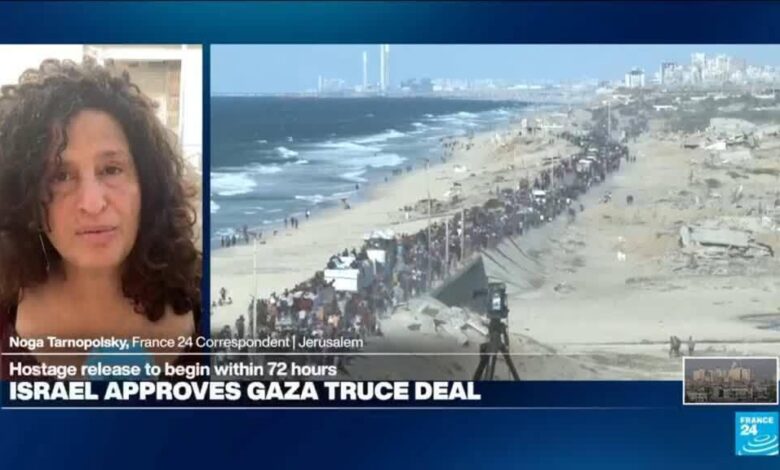ودخل وقف إطلاق النار بين إسرائيل وحماس حيز النفاذ في غزة يوم الجمعة، بعد موافقة مجلس الوزراء على اتفاق لوقف القتال وتبادل الرهائن المتبقين من أجل السجناء الفلسطينيين. أول إطلاقات رهائن متوقعة قريباً ولكن رئيس الوزراء بنيامين نيتانياهو ظل غامضاً حول ما إذا كان هذا يمثل نهاية الحرب، .