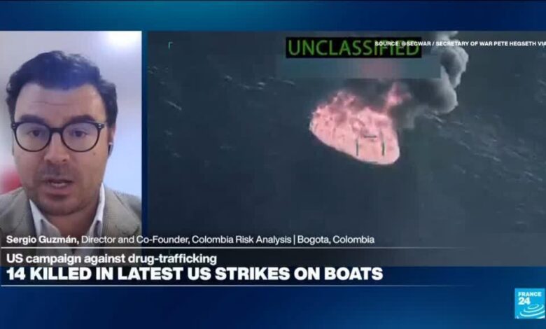 بالحديث مع مارك أوين، سيرجيو غوزمان، مدير وشريك في تحليل مخاطر كولومبيا، يقول أن الولايات المتحدة، مع الإضرابات على القوارب المتهمة بنقل المخدرات غير المشروعة، تدفع حداً خطيراً في القانون الدولي، مضيفاً أن رد العديد من بلدان أمريكا اللاتينية كان أيضاً ضعيفاً.