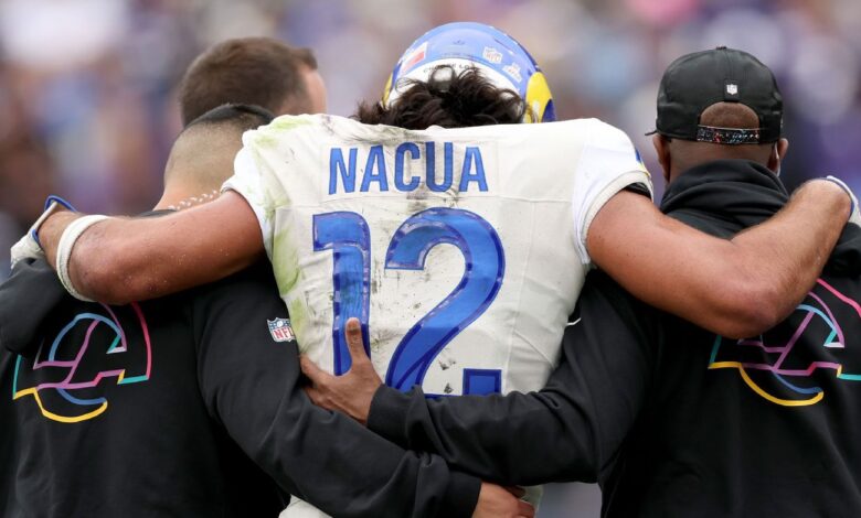 لم تمارس (ناكوا) يوم الأربعاء بينما كان يتعافى من كاحل يسار ملتوي عانى منه في الربع الثاني من انتصار (رامز) الـ 17-3 على (بالتيمور ريفنز) يوم الأحد الماضي بينما كان يحاول الإمساك بعربة في المنطقة النهائية.